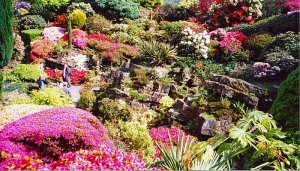 Set in a tranquil woodland valley in West Sussex, the Leonardslee gardens are one of the largest and most spectacular in England. A small stream runs along the bottom of the valley, and spreads out at intervals into a series of lakes, and the whole valley has a background of old oak, beech and birch, intermingled with larch and Scots pine. The soil is a light loam overlaying fine-grained Cretaceous sandstone, and ericaceous plants – such as rhododendrons, azaleas, camellias and magnolias – all flourish well here.