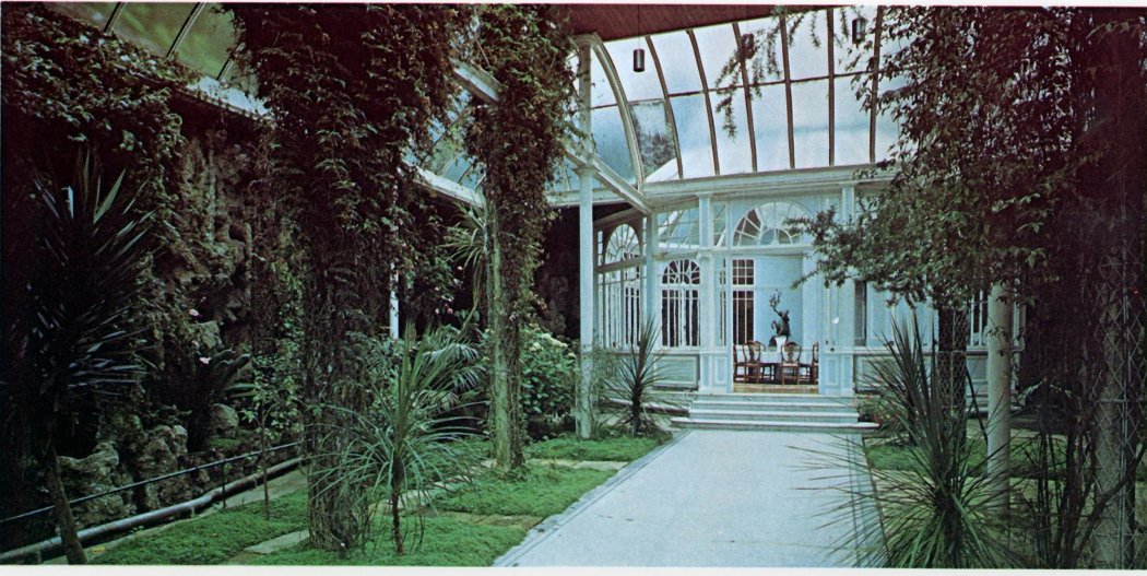 He then built a superb octagonal sunroom beyond the front door that led into a glass-covered winter garden, on the front of which was a porte-cochère – or porch that was large enough to enable Theodore and his guests to alight from their coach, and proceed on foot between the ferns that lined the pathway through the winter garden to the steps leading through to the Sunroom, and thence to the front door beyond – and they never got wet!
