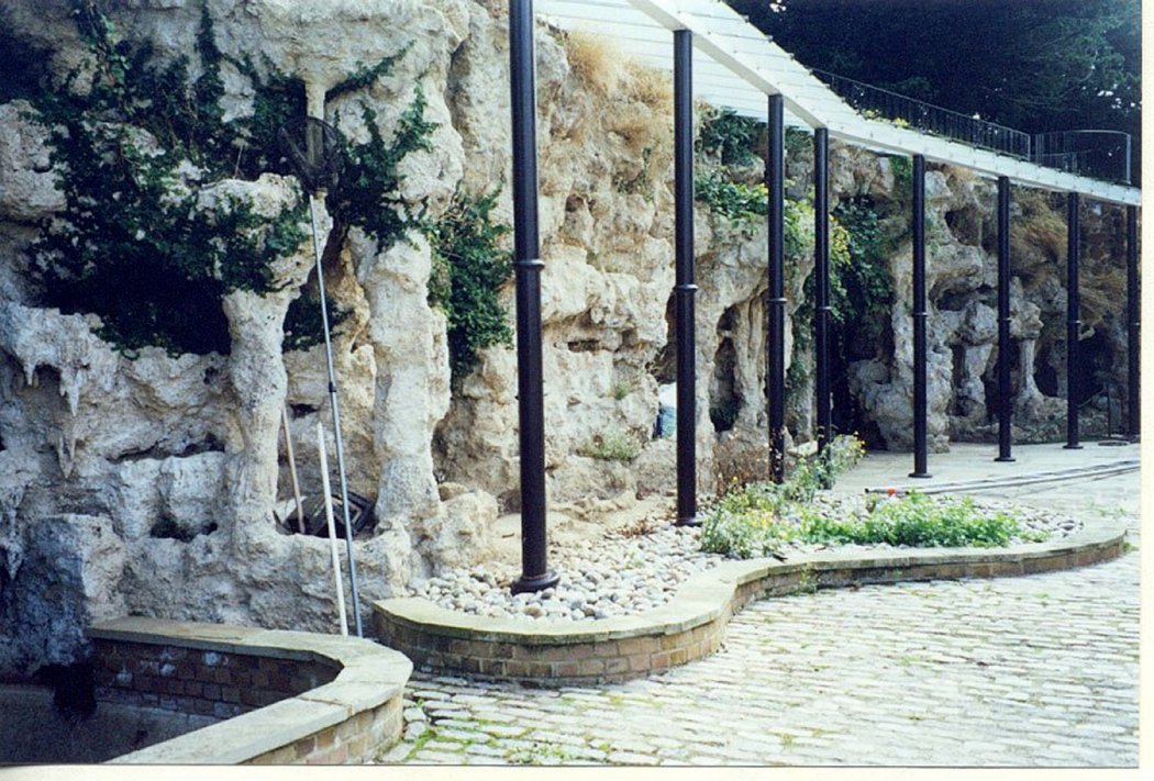 Fig 9 – The tufa-covered wall to the left of the courtyard in 2001