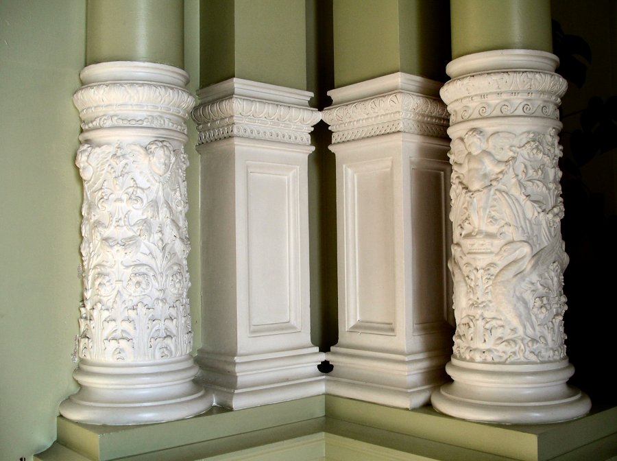 Halton House was built between 1880-83, at around the same time that James 2 was working on the Tulip Patch caves at Waddesdon. The firm also worked for Alfred’s father, Lionel, at Gunnersbury Park in 1874, and it is consequently not stretching the imagination very far to conclude that they would be among the first contractors to be considered whenever the family wanted to construct ornamental garden features elsewhere. The ‘large domed conservatory known as the winter garden’ was attached to the house, but was demolished in 1936 because it was no longer safe after many years of neglect. It was replaced by the West Wing single officers’ accommodation, and the Halton House website carries some interesting pictures that show how it looked in its heyday. [iii] Fig 1 shows the exterior, which carries all the signs of the Pulhams’ involvement. Its quatrefoil shape is one that was often used in the design of their fountain basins, and it has a balustraded terrace and steps, together with a collection of vases – it is not possible to identify which ones they are from this description, but they certainly look ‘right’. Fig 2 shows the interior of the winter garden, and, here again, this looks quite similar to others they created elsewhere. In fact, it is really taking the firm back to its roots, as can be seen if one refers back to the work they did at Kilnwick Percy, near Pocklington, Yorkshire, in 1848 (‘Rock Landscapes’, Fig 2.16), and at the Victoria and Albert Museum in London in 1867-68 (‘Rock Landscapes’ Fig 3.23). The entrance lobby to the Winter Garden still remains, and four of its original pillars are pictured in Fig 3.