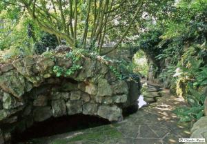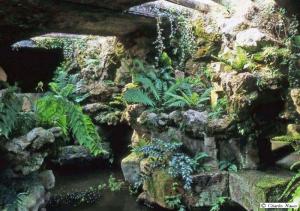 1 – A fern-encrusted passageway leads to the subterranean areas of the site. Rocks and Pulhamite were used in the garden’s construction.